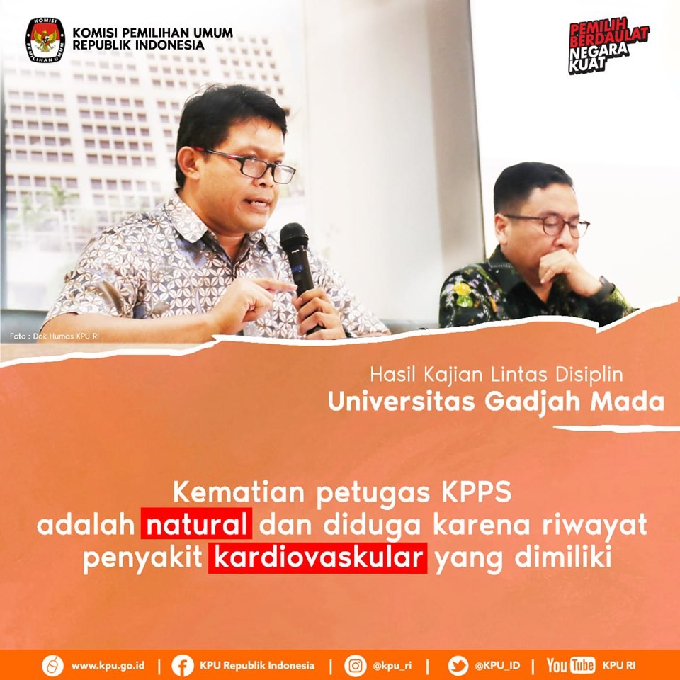 Kajian Lintas Disiplin UGM (Fisipol, Psikologi, Kedokteran, Kesmas dan Keperawatan) bulan Mei-Juni 2019 ini menggunakan metode campuran (kuantitatif dengan metode survei dan kualitatif dengan metode deskriptif). (Source: Facebook KPU Republik Indonesia)