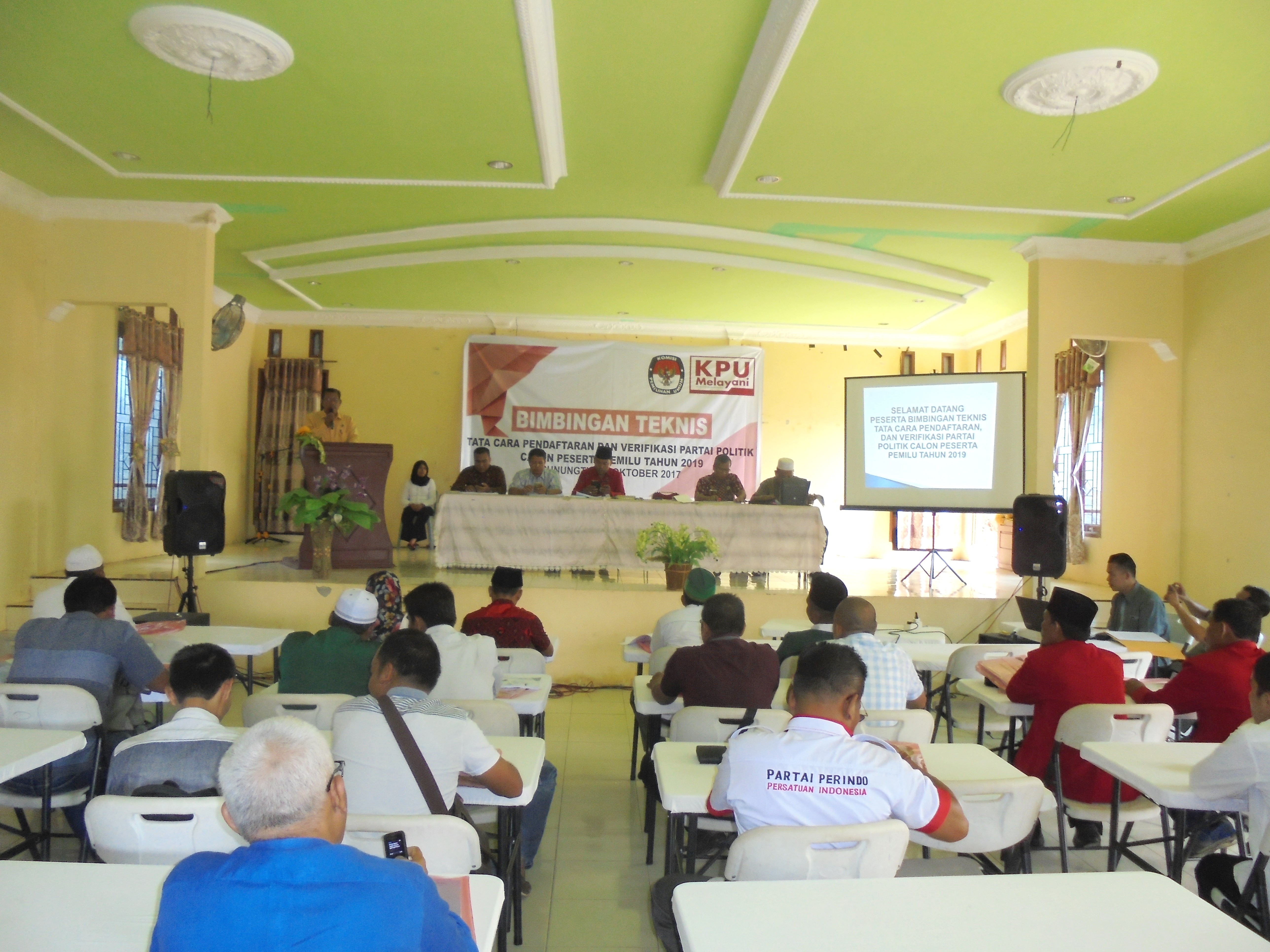 Anggota KPU divisi SDM dan Parmas, Herisal Lubis dalam bimtek tersebut menegaskan, sebagaimana regulasi yang ada masing-masing Parpol diwajibkan menyerahkan dokumen persyaratan partai politik, pendaftaran dilakukan sentralistik yaitu partai tingkat pusat ke KPU RI, sementara pengurus partai tingkat daerah menyerahkan daftar keanggotaan yang dilampiri KTA dan KTP Elektronik/Surat Keterangan (Suket) ke KPU Kabupaten/Kota.