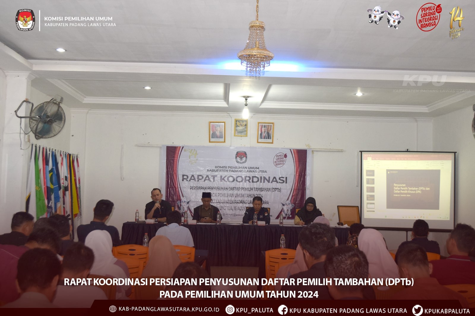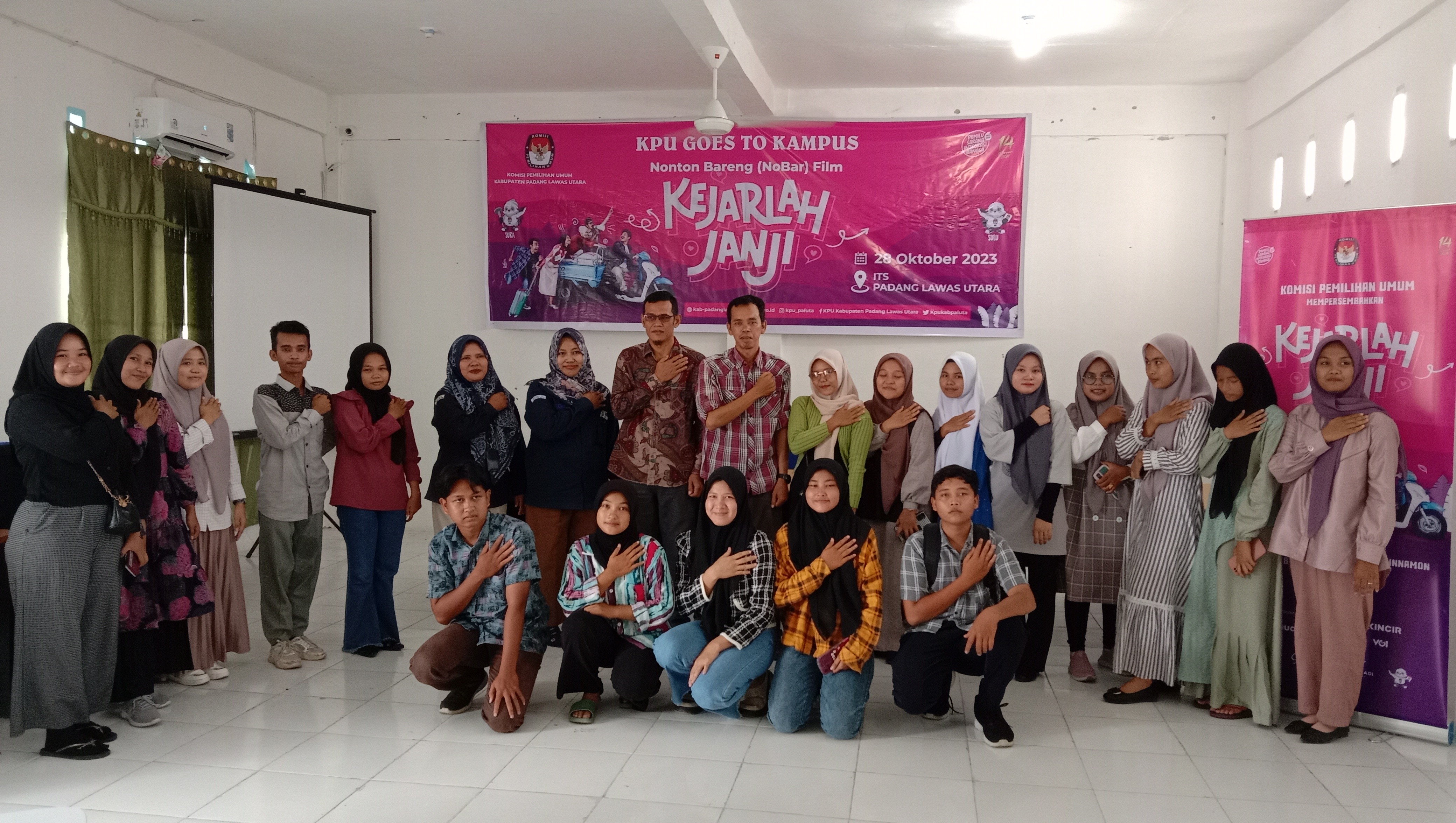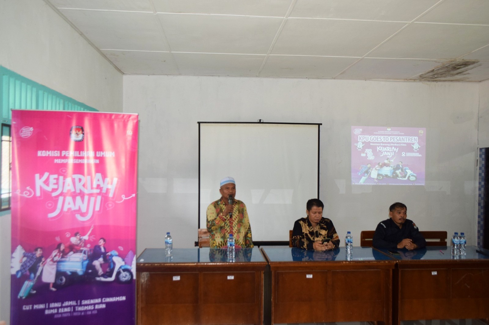 Gunungtua - Bertepatan dengan Hari Santri Nasional 2023, Komisi Pemilihan Umum (KPU) Kabupaten Padang Lawas Utara menggelar kegiatan KPU Goes to Pesantren dengan tema nonton bareng (nobar) film “Kejarlah Janji”, Minggu (22/10/2023). Kegiatan yang digelar di Pondok Pesantren Gunung Raya, Kecamatan Portibi, Kabupaten Padang Lawas Utara tersebut bertujuan untuk mengajak kaum pemilih pemula, khususnya yang ada di pondok pesantren untuk lebih peduli pentingnya partisipasi memilih dalam Pemilihan Umum (Pemilu). Hadir pada kegiatan KPU Goes to Pesantren anggota KPU Kabupaten Padang Lawas Utara Muhammad Nafsir Rambe, Lidiyawati Harahap, Yusran Harahap, Kasubbag Teknis Penyelenggara dan Partisipasi, dan Hubungan Masyarakat Pargadiapari Harahap, perwakilan dari salah satu guru di pondok pesantren, serta 50 orang santri di pondok pesantren Gunung Raya. Film Kejarlah Janji merupakan film yang diproduksi oleh KPU untuk menyambut Pemilu tahun 2024 memiliki pesan bahwa pemilu membawa pesan damai dan pendidikan politik yang kuat. Film yang disutradarai oleh Garin Nugroho ini dapat mengibur para santri Pondok Pesantren Gunung Raya. Hal ini terlihat antusiasme dan raut muka yang senang dari para santri ketika film diputar. Muhammad Nafsir Rambe berpendapat mayoritas para santri yang merupakan pemilih pemula ini memiliki peran yang strategis untuk berpartisipasi menyukseskan Pemilu tahun 2024. “Bahwa DPT tingkat Kabupaten Paluta pada Pemilu 2024 menempatkan bahwa generasi Z berada diposisi kedua terbanyak dari jumlah DPT yang ditetapkan, kemungkinan santri yang ikut nobar ini berada pada kategori generasi Z”, kata Nafsir. Sementara Pargadiapari berpesan para santri agar dapat mengambil nilai positif dari film Kejarlah Janji. “Silakan disimak filmnya hingga selesai karena film Kejarlah Janji ini selain menghibur juga memiliki pesan moral yang baik tentang Pemilu dan demokrasi”, kata Pargadiapari. Selesai nonton bersama film Kejarlah Janji, diakhiri dengan sesi foto bersama antara KPU Kabupaten Padang Lawas Utara, perwakilan pengasuh pondok pesantren, dan para santri. Kegiatan berlangsung lancar, tertib, dan aman. (Sandy-KPU Kab Padang Lawas Utara)