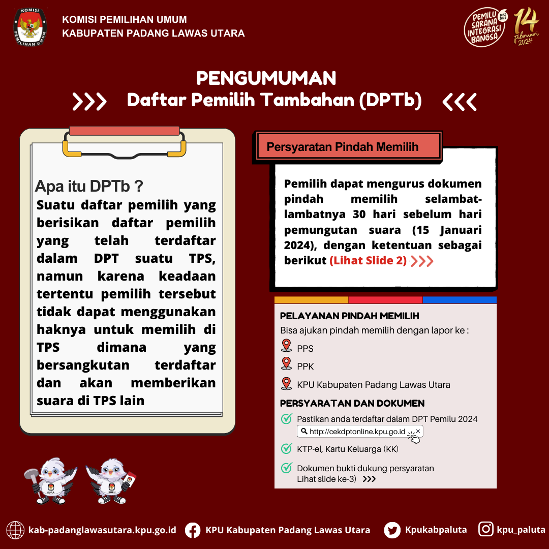 Berikut disampaikan Pengumuman Daftar Calon Sementara (DCS) Anggota DPRD Kabupaten Padang Lawas Utara dalam Pemilihan Umum Tahun 2024